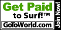 You Get Paid for every hour that you and your referral base use the GoToWorld.com MiniPortal (up to 40 hours per month). As long as you have the MiniPortal running and have an active Internet connection you can earn cash every minute you are using your computer even if you are performing other tasks. Their current rates pay you .40 for every hour you surf, .10 for every hour your direct referrals surf, .15 for their referrals and .20 for their referrals.